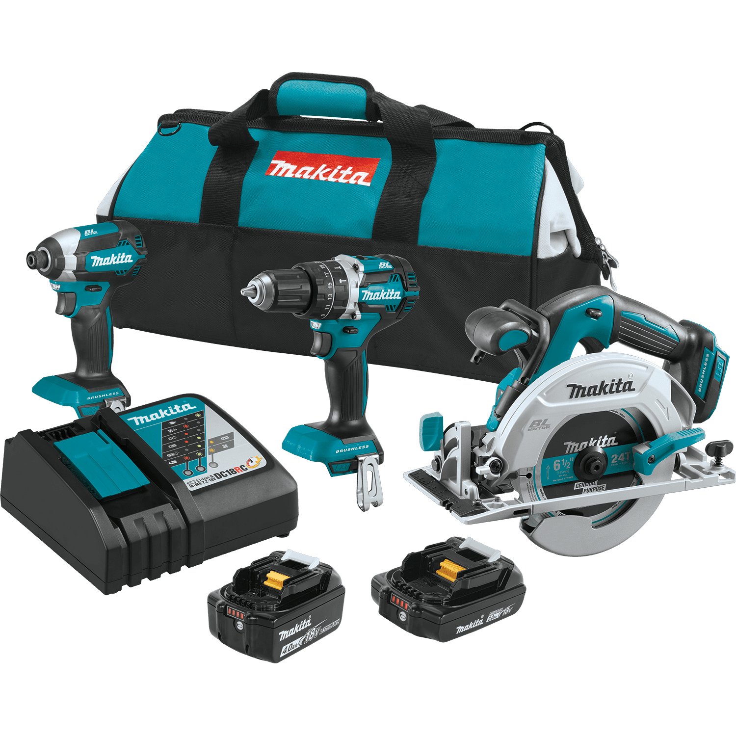- INCLUDES w/ DETAILS - 18V LXT® Compact Brushless 1/2" Hammer Driver-Drill (XPH12Z), 18V LXT® Brushless Impact Driver (XDT13Z), 18V LXT® Brushless 6-1/2" Circular Saw (XSH03Z), 18V LXT® Lithium-Ion 4.0Ah Battery (BL1840B), 18V LXT® Lithium-Ion Compact 2.0Ah Battery (BL1820B), 18V LXT® Lithium-Ion Rapid Optimum Charger (DC18RC), Tool Bag (831271-6),