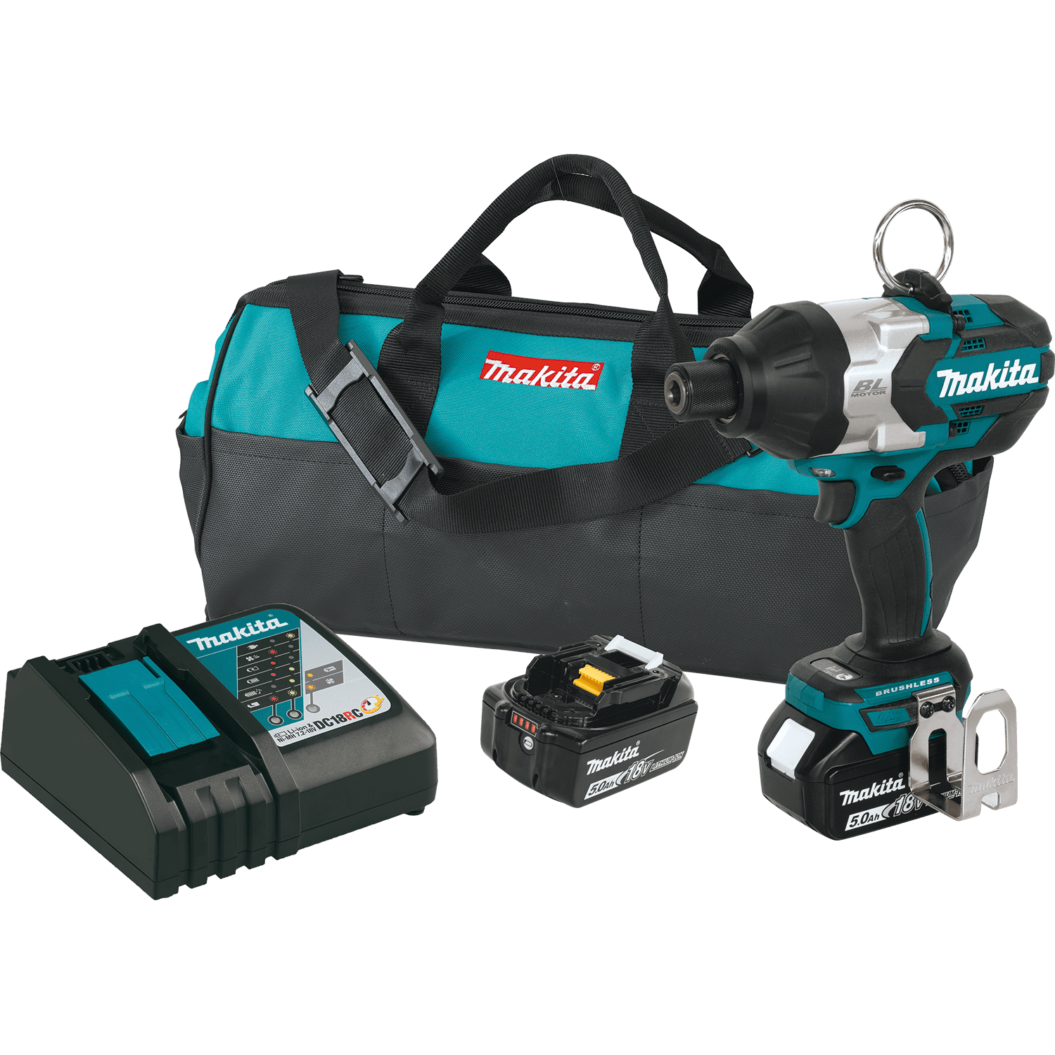 - INCLUDES w/ DETAILS - 18V LXT® Brushless High Torque 7/16" Impact Wrench (XWT09Z), 18V LXT® Lithium-Ion Rapid Optimum Charger (DC18RC), 2 18V LXT® Lithium-Ion 5.0Ah Battery (BL1850B), Tool Bag