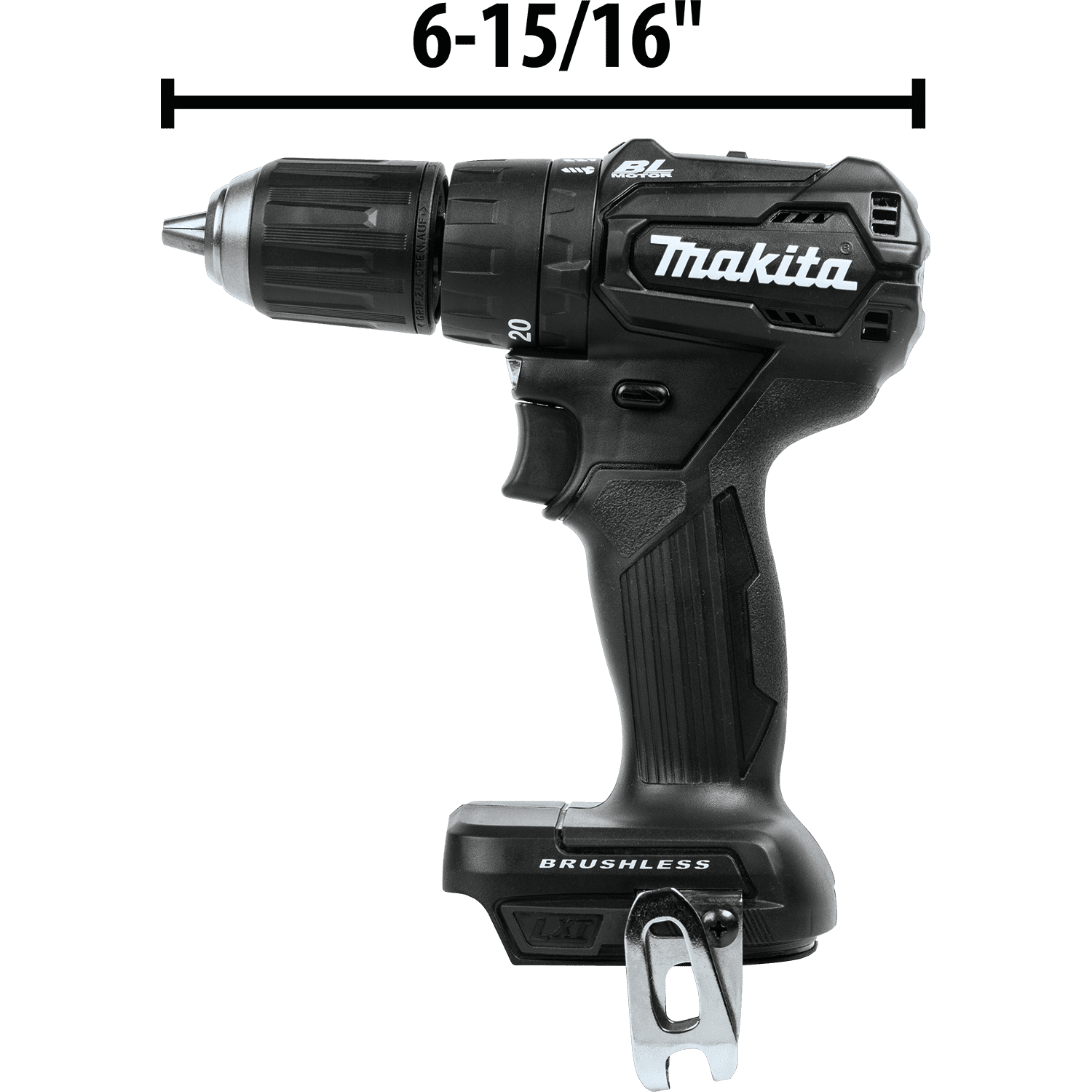 Do more with less. The Makita 18V LXT® Lithium-Ion Sub-Compact Brushless Cordless Hammer Driver-Drill (model XPH11ZB, tool only, battery sold separately) is an ultra-compact drilling and driving solution with significantly less weight. The 18V Sub-Compact Hammer Driver-Drill is part of a new class of compact, with the size and weight of lower voltage tools but with the performance, power and compatibility of 18-Volt. The expansive breadth-of-line of the Makita 18V LXT® Series means an 18V battery from any LXT® tool will power the 18V Sub-Compact Hammer Driver-Drill. The XPH11ZB has an efficient brushless motor with two speed settings and dual L.E.D. lights to illuminate the work area. At only 6-3/8 in. and 2.8 lbs. (with battery, sold separately) it is an ultra-compact drilling and driving solution with superior comfort and handling. It’s part of Makita’s expanding 18V Lithium-Ion system, the world’s largest cordless tool system powered by 18V Lithium-Ion slide-style batteries. Makita 18V Lithium-Ion batteries have the fastest charge times in their categories, so they spend more time working and less time sitting on the charger. For improved tool performance and extended battery life, Makita created Star Protection Computer Controls™. Star Protection is communication technology that allows the Star Protection-equipped tool and battery to exchange data in real time and monitor conditions during use to protect against overloading, over-discharging and overheating. For increased versatility, the tool can also be powered by Makita 18V LXT® and Compact Lithium-Ion batteries with the Star Symbol™ on the battery indicating Star Protection inside. Compact and ergonomic design at only 6-15/16" long. Weighs only 2.9 lbs. with battery (battery not included) for reduced operator fatigue. Ideal for working in tight spaces. Mechanical variable 2-speed transmission (0-500 & 0-1,700 RPM) (0-7,500 & 0-25,500 BPM) for a wide range of drilling, fastening and hammer drilling applications. Dual L.E.D. lights illuminate the work area. Ergonomically designed handle with rubberized soft grip provides increased comfort. BL™ Brushless Motor delivers 350 in.lbs. of Max Torque. The BL™ Brushless Motor eliminates carbon brushes, enabling the BL Motor to run cooler and more efficiently for longer life. Efficient BL™ Brushless motor is electronically controlled to optimize battery energy use for up to 50% longer run time per charge. The electronically-controlled BL™ Brushless Motor efficiently uses energy to match torque and RPM to the changing demands of the application. Convenient 1/2" keyless chuck for fast and easy bit installation and removal. Electric brake for maximum productivity. Extreme Protection Technology (XPT™) is engineered for improved dust and water resistance for operation in harsh conditions. Equipped with Star Protection Computer Controls™ to protect against overloading, over-discharging and over-heating. Compatible with Makita 18V Lithium-Ion batteries with a Star symbol (battery sold separately). 3-year limited warranty. Only use genuine Makita batteries and chargers.