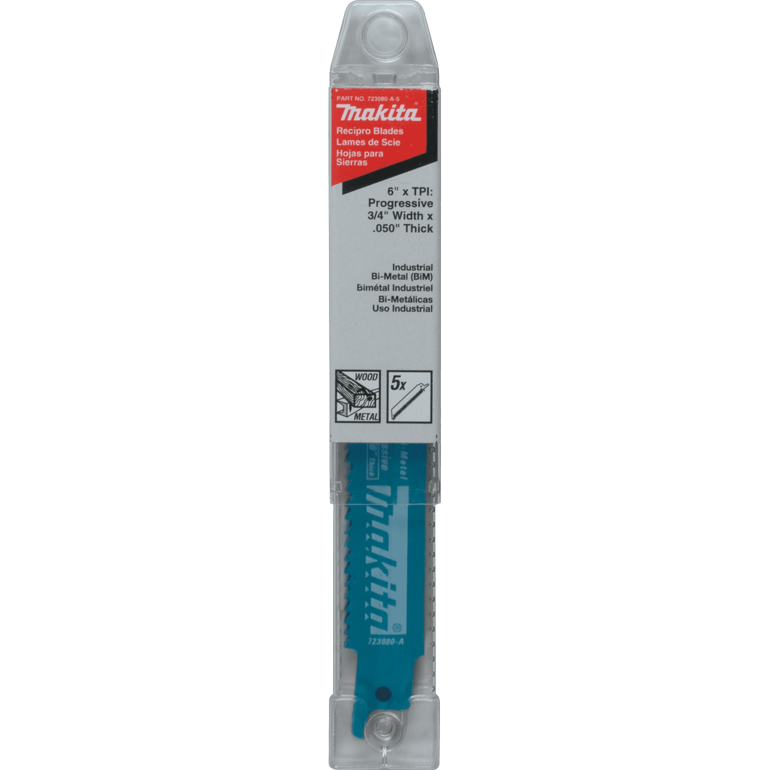 Makita All Purpose Reciprocating Saw Blades are made from high quality steel for clean cuts and longer life. They are designed to cut through a variety of materials including wood and metal. The blade features a 3/4" width for faster cutting. Bi-Metal construction lasts 10 times longer than HCS blades. First tooth consistently centered on each blade for straight plunge cuts. Progressive tooth spacing for all-purpose cuts in a variety of wood, metal and plastic. Convenient 5 pack.