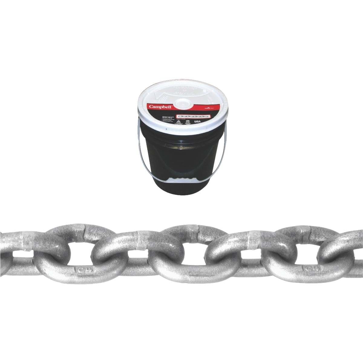 Grade 43 high test chain. Designed for use in load binding, towing, logging, and other applications requiring high-strength. Proof tested. Carbon steel. Do not use for overhead lifting.