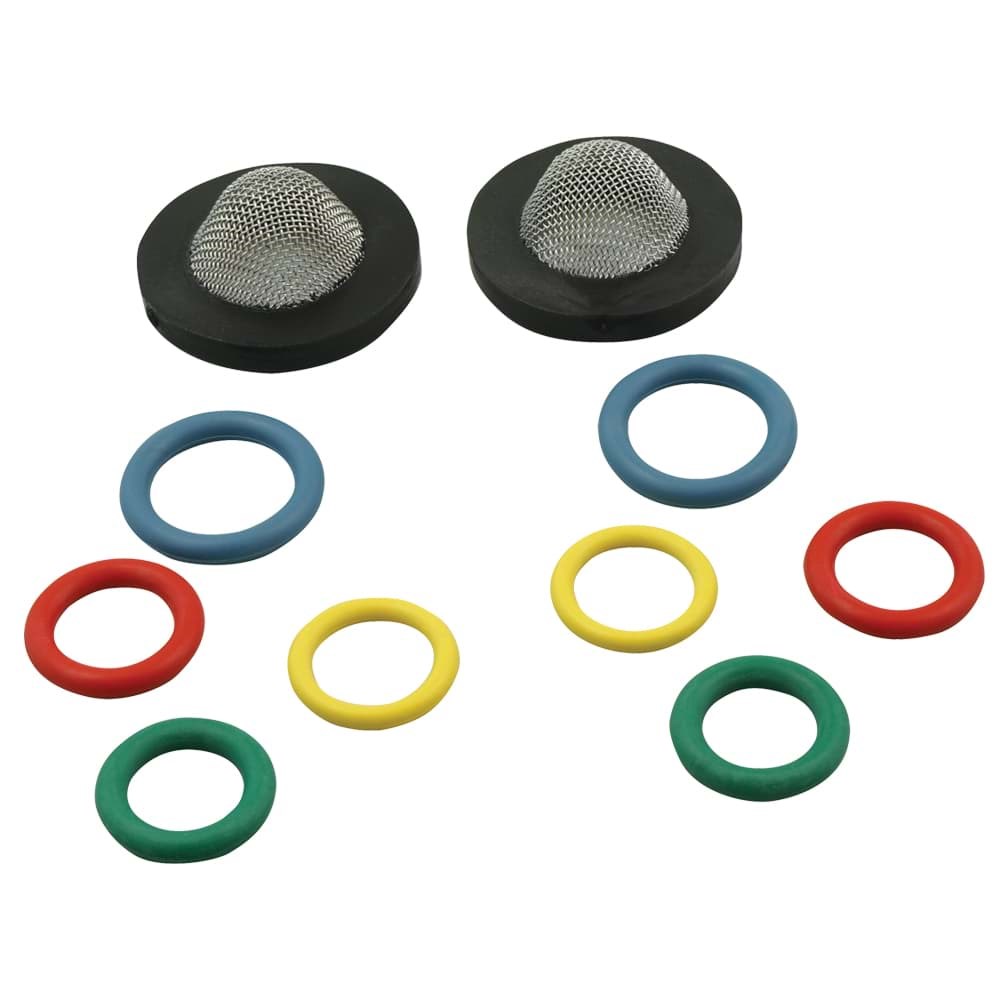 - Includes: 50/60 Mesh Inlet Water Filter, Red 15 mm O-ring for Female Metric Fittings, Yellow 14 mm O-ring for Female Metric Fittings, Blue O-ring for 3/8" Quick Disconnects, Green O-ring for 1/4" Quick Disconnects