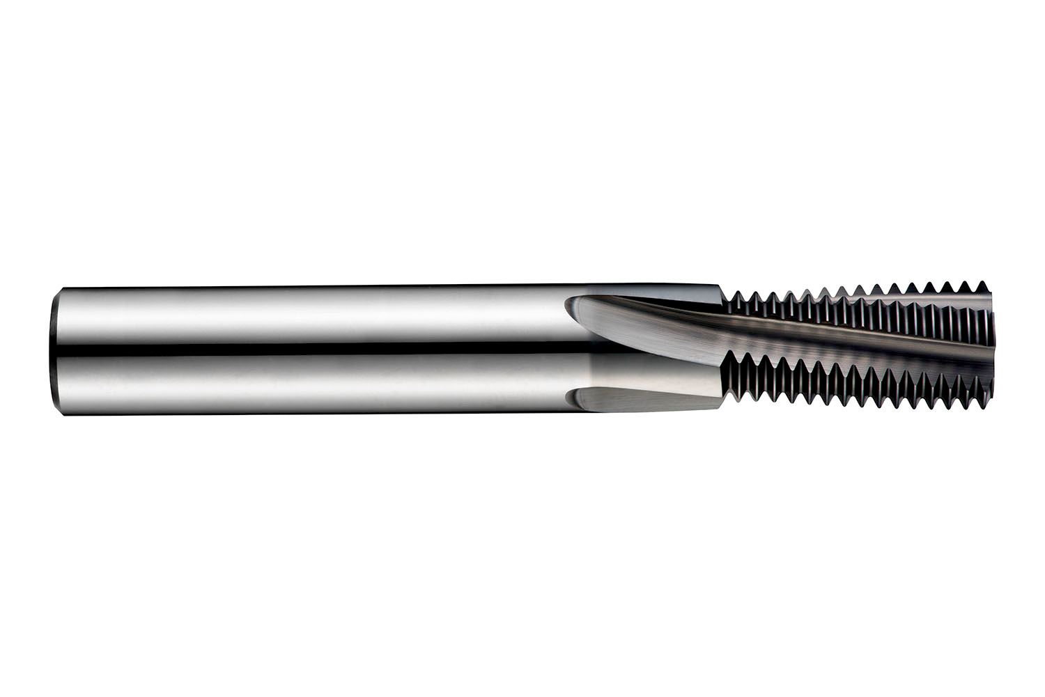 Thread milling cutter, for ISO-Metric Fine thread = M10 with 1.00 mm pitch, dimensions according to DORMER standard with 4 flutes, 8mm cutting diameter and 8mm parallel shank according to DIN 6535 HA, solid carbide with Alcrona Pro coating and 10° helix angle for milling a maximum of 16mm long right or left hand internal thread in steel and cast steel, ferritic, martensitic and austenitic stainless steel, cast-iron, non-ferrous metals, chilled cast-iron