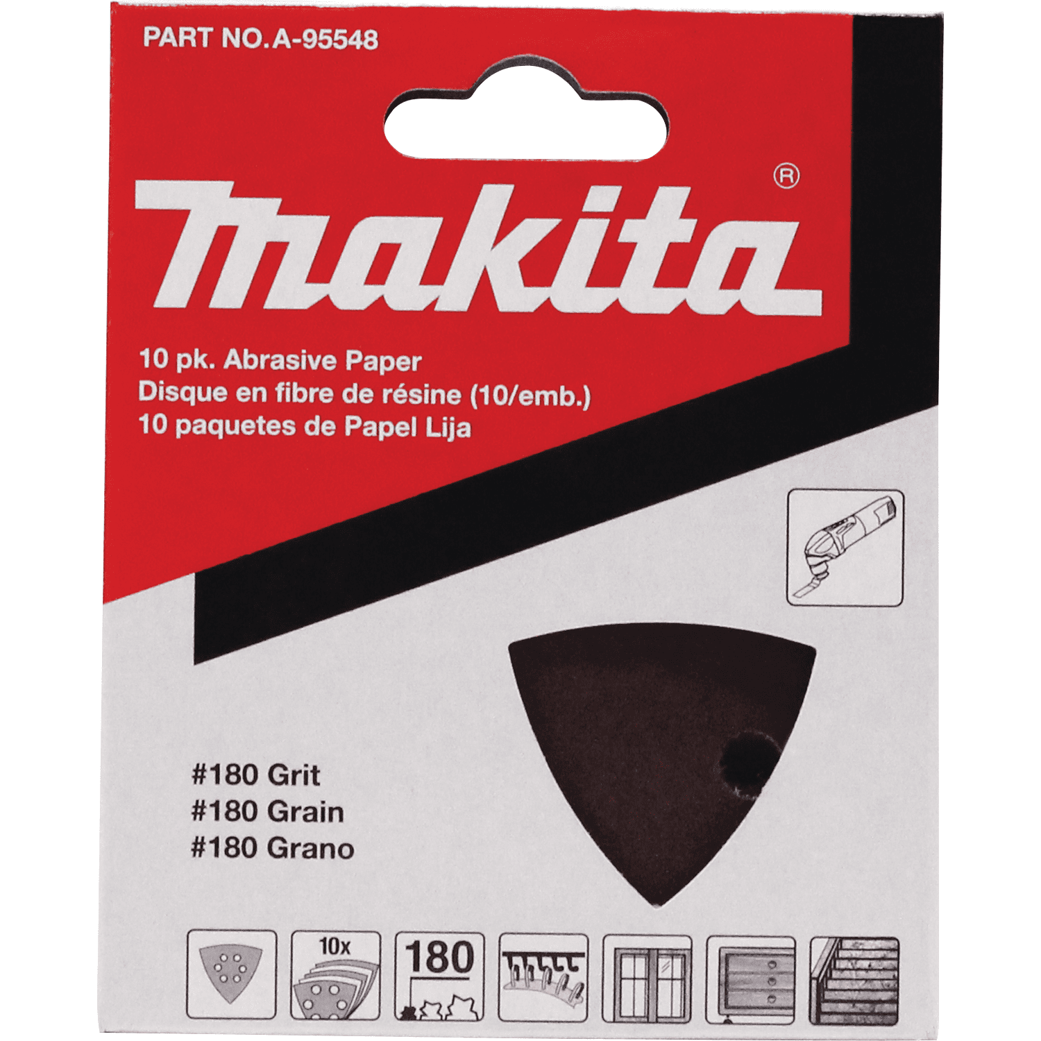 Makita sandpaper is constructed of high quality aluminum oxide grain abrasive for improved material removal and added durability. The resin glue coating and open coat grain distribution reduce grain clogging. The heavyweight backing paper reduces edge tear-out. High-quality aluminum oxide grain abrasive for increased durability and sharpness. Open-coat grain distribution and resin glue coating reduces grain clogging and improves finish on wood surfaces. Heavyweight paper provides strong backing and reduces edge tear-out for more sanding. Ideal for use on bare wood, paint, varnish, fillers, plastic and other materials. Fits Makita and Bosch Multi-Tool sanding pads.