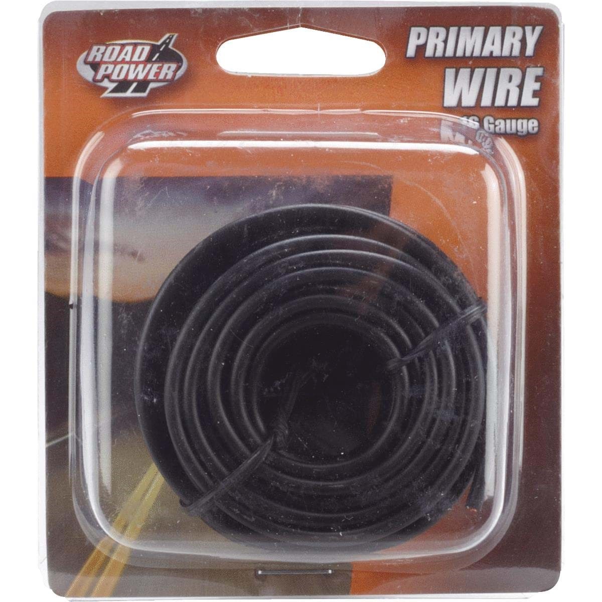 General-purpose wiring for automobiles, boats, trucks, buses, tractors, trailers, and other motor-driven equipment. Primary wire intended for use in surface electrical systems 60 DC volts (25 AC volts) or less. Single conductor stranded copper insulated with color-coded PVC that is impervious to oil, grease, and diesel fumes. Temperature range from -20C to +60C. Manufacturer part number includes color code at end. 11 = Black, 12 = blue, 14 = yellow, 15 = green, 16 = red, 1 = white. Meets SAE standards. Carded.