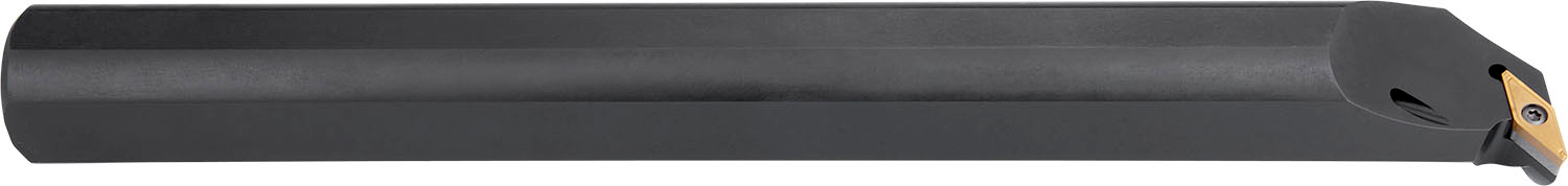 Screw clamp boring bar for holding a 35° rhombus positive insert with an inscribed circle diameter of 6.35mm, 3.18mm thick (ISO designation VB.. 1103.. ), left hand 93° end cutting with off-set shank, steel with coolant hole, 16mm diameter x 200mm long for single and multi-directional copy boring and back chamfering