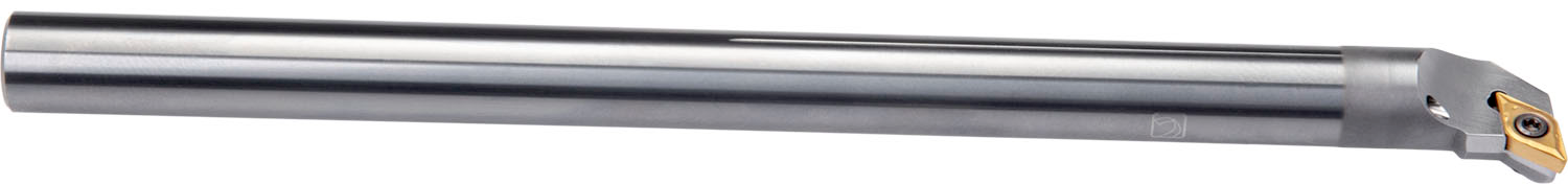 Screw clamp boring bar for holding a 55° rhombus positive insert with an inscribed circle diameter of 6.35mm, 2.38mm thick (ISO designation DC.. 0702.. ), left hand 93° end cutting with off-set shank, carbide with coolant hole, 16mm diameter x 200mm long for taper boring, single and multi-directional copy boring and longitudinal boring with and without shoulder