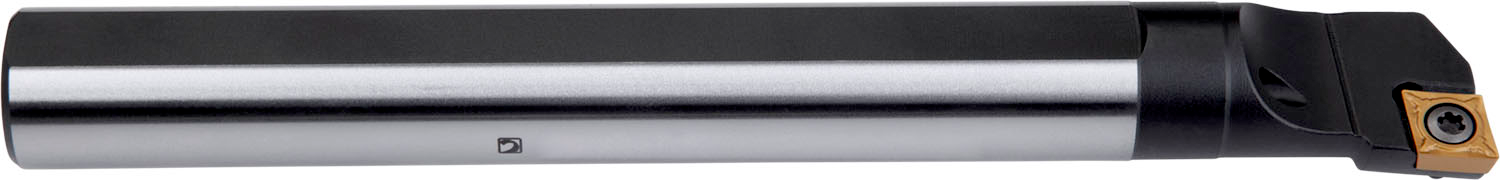 Screw clamp boring bar for holding a 80° rhombus positive insert with an inscribed circle diameter of 7.94mm, 3.18mm thick (ISO designation CC.. 0803.. ), left hand 95° side and end cutting with off-set shank, steel with coolant hole, 16mm diameter x 200mm long for taper boring and longitudinal boring with and without shoulder