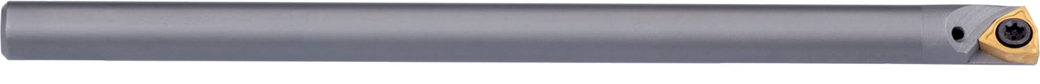 Screw clamp boring bar for holding a 80° trigon positive insert with an inscribed circle diameter of 3.97mm, 1.59mm thick (ISO designation WC.. 0201.. ), left hand 93° end cutting with off-set shank, carbide with coolant hole, 6mm diameter x 90mm long for taper boring and longitudinal boring with and without shoulder