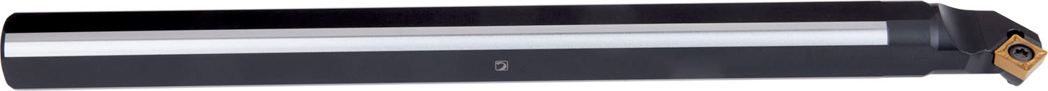 Screw clamp boring bar for holding a triangular positive insert with an inscribed circle diameter of 5.56mm, 2.38mm thick (ISO designation TC.. 0902.. ), left hand 90° end cutting with off-set shank, steel with coolant hole, 10mm diameter x 125mm long for taper boring and longitudinal boring with and without shoulder