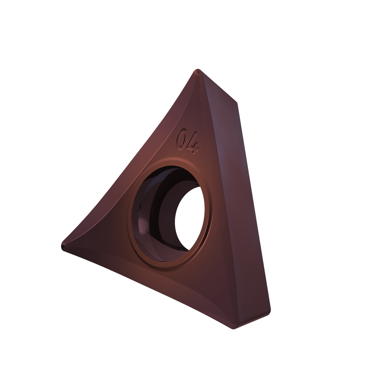 Single-sided positive turning insert, triangular with 7° clearance, inscribed circle diameter of 0.375 inch, 0.156 inch thick, 0.016 inch nose radius, indexing accuracy according to ISO-tolerance class-G, chip-breaker SF3 with rounded cutting edges, in grade T8415.