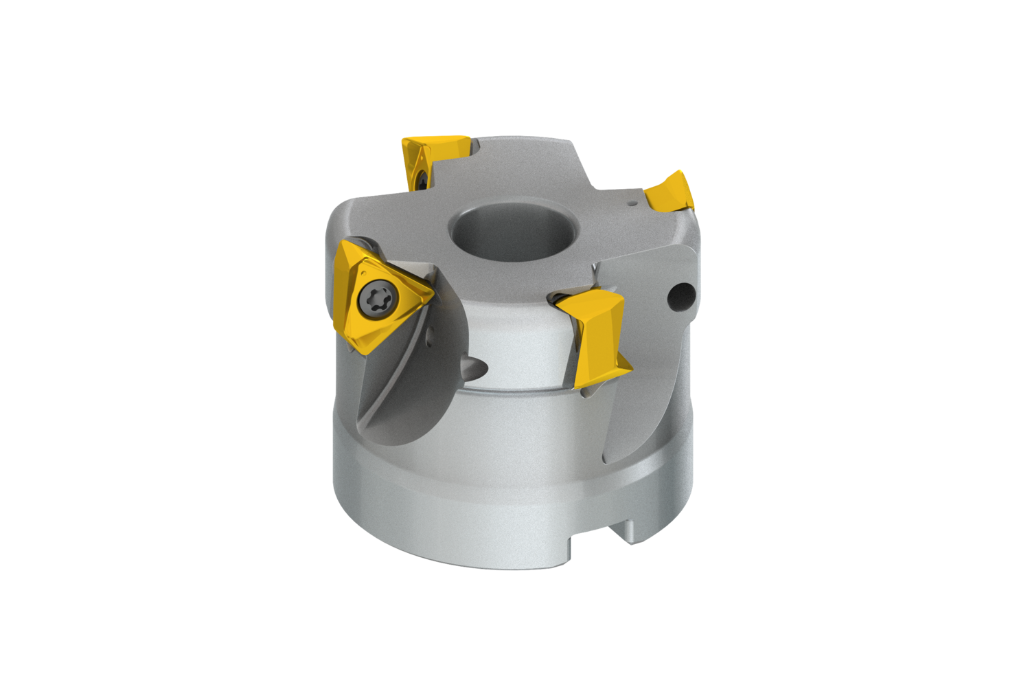 Shoulder face mill with double negative geometry which utilises 4 of TNGX 1606.. double-sided inserts, cutting diameter 2.000" with 90° approach angle and connection bore according to DIN 8030-A, , through coolant and differential pitch for face milling, shallow shoulder milling, shallow slot milling and helical milling in pre-machined holes