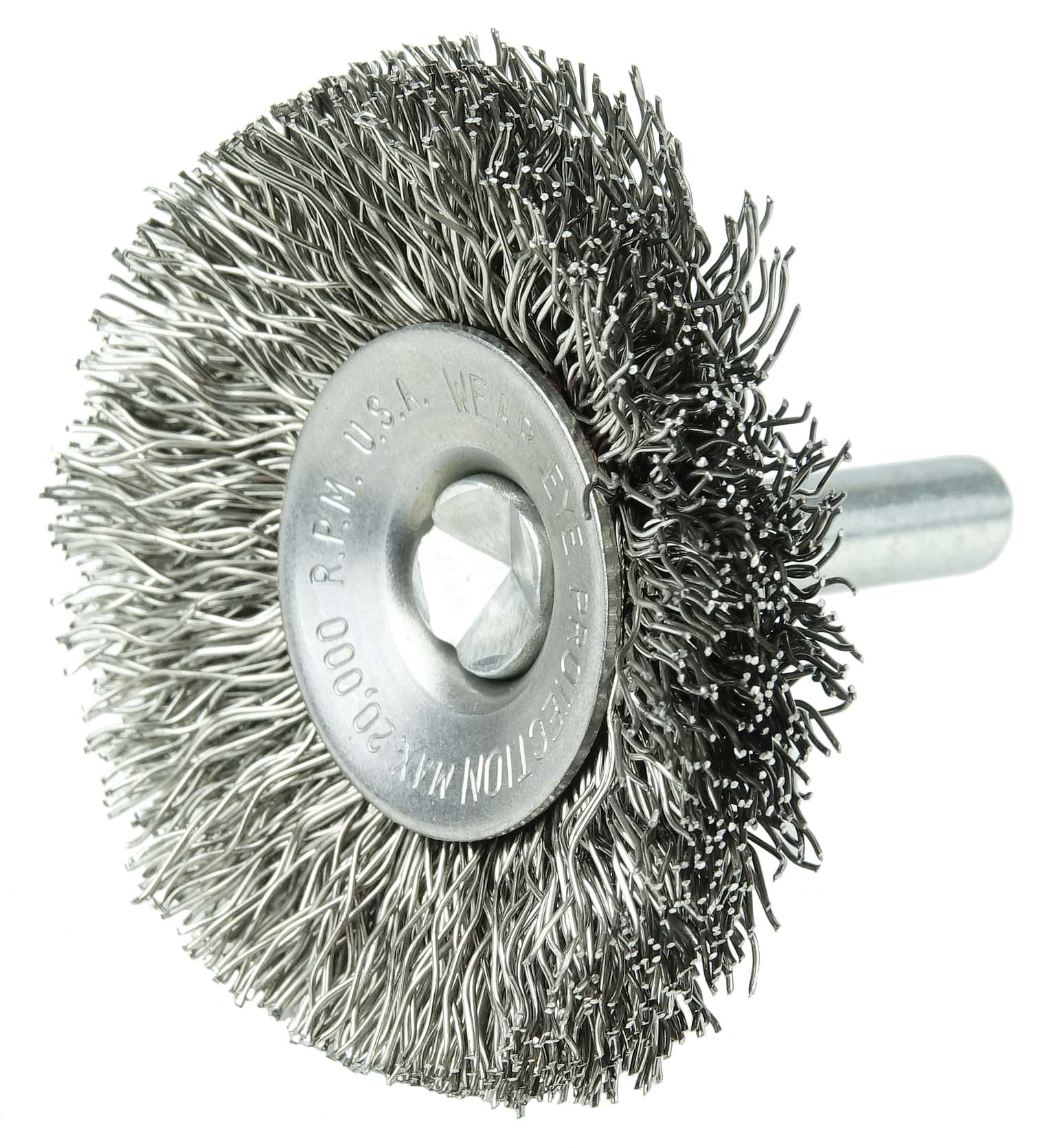 - Crimped wire wheels with a permanently-attached 1/4 in stem or shank are primarily intended for use on high speed die grinders
