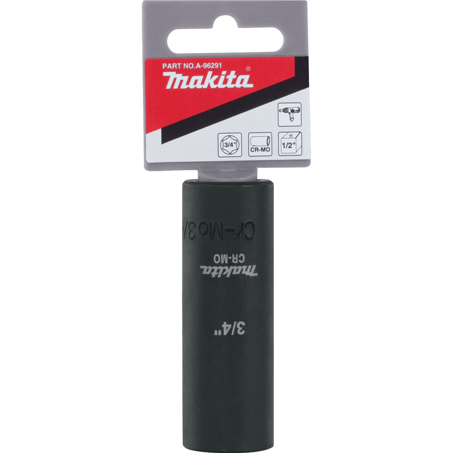 Makita Deep Well Impact Sockets are the perfect accessory for a high torque impact wrench when taking on demanding applications like driving large lags through support beams, setting anchors, and removing stuck weather-rusted nuts. Makita Deep Well Impact Sockets are constructed with Chromium-Molybdenum Steel (CR-MO) and black oxide coated for longer life. The sockets have a 3-3/16” length for longer reach and the ability to fasten over longer threads. They are engineered for use with high-torque impact wrenches, and can also be used with impact drivers (adapter required, sold separately) and ratchets. Makita Deep Well Impact Sockets are ideal for tilt-up contractors, formers, framers, deck builders, and more. Chromium-Molybdenum Steel (CRMO) construction for added durability and long life. 3-3/16" deep for longer reach and the ability to fasten over longer threads. Locking hole keeps the socket securely attached to the impact driver. Laser etched for easy identification. High strength 6-point drive sockets for Xtreme torque applications. Black oxide coated to resist corrosion for longer socket life. 1/2" drive designed to handle the most demanding applications. For fastening nuts onto bolts in high torque applications. Sockets are ideal for use with impact drivers (with adapter), impact wrenches and ratchets.