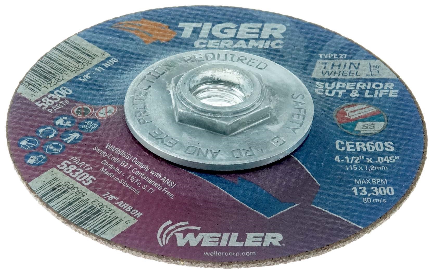- Cool cutting ceramic grains cut at lower temperatures and with less friction, reducing heat discoloration of the work piece.