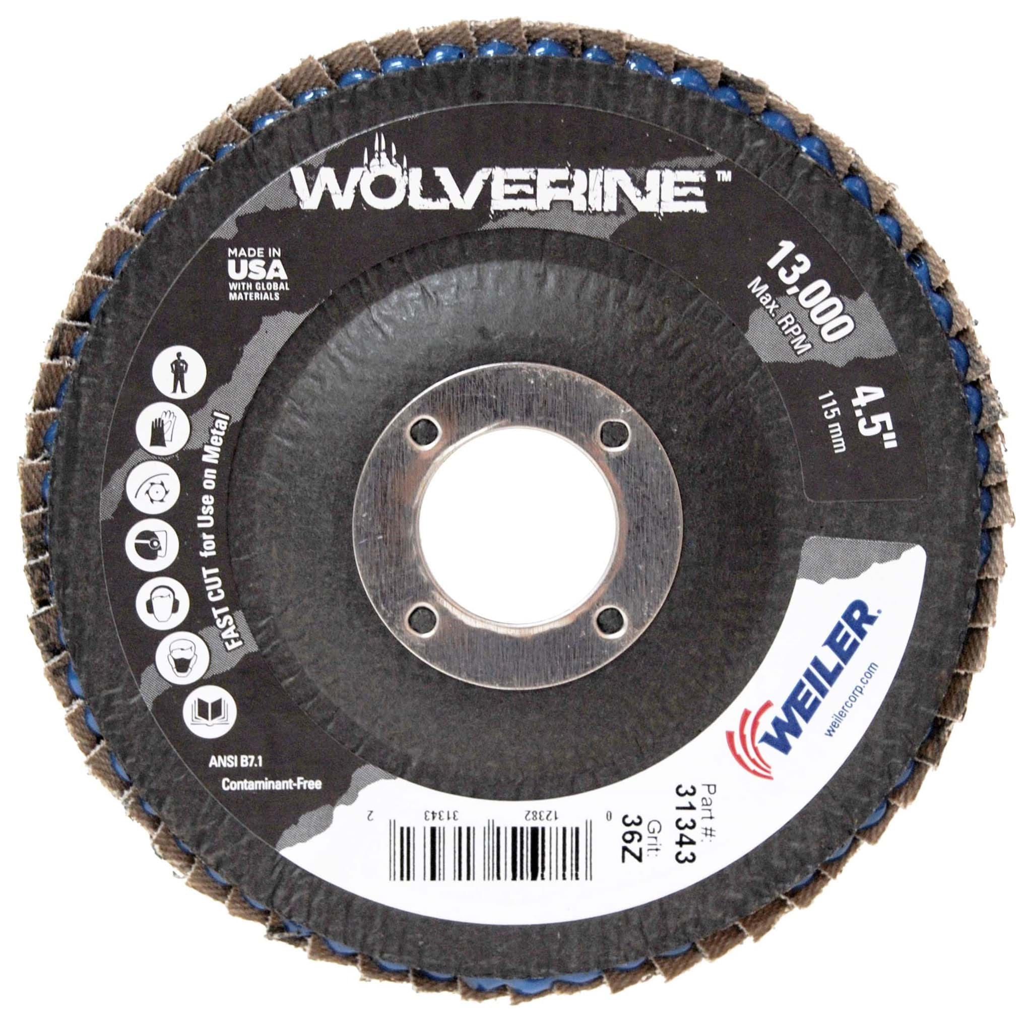 4-1/2" Wolverine Abrasive Flap Disc, Conical (TY29), Phenolic Backing, 80Z, 5/8"-11 UNC Nut