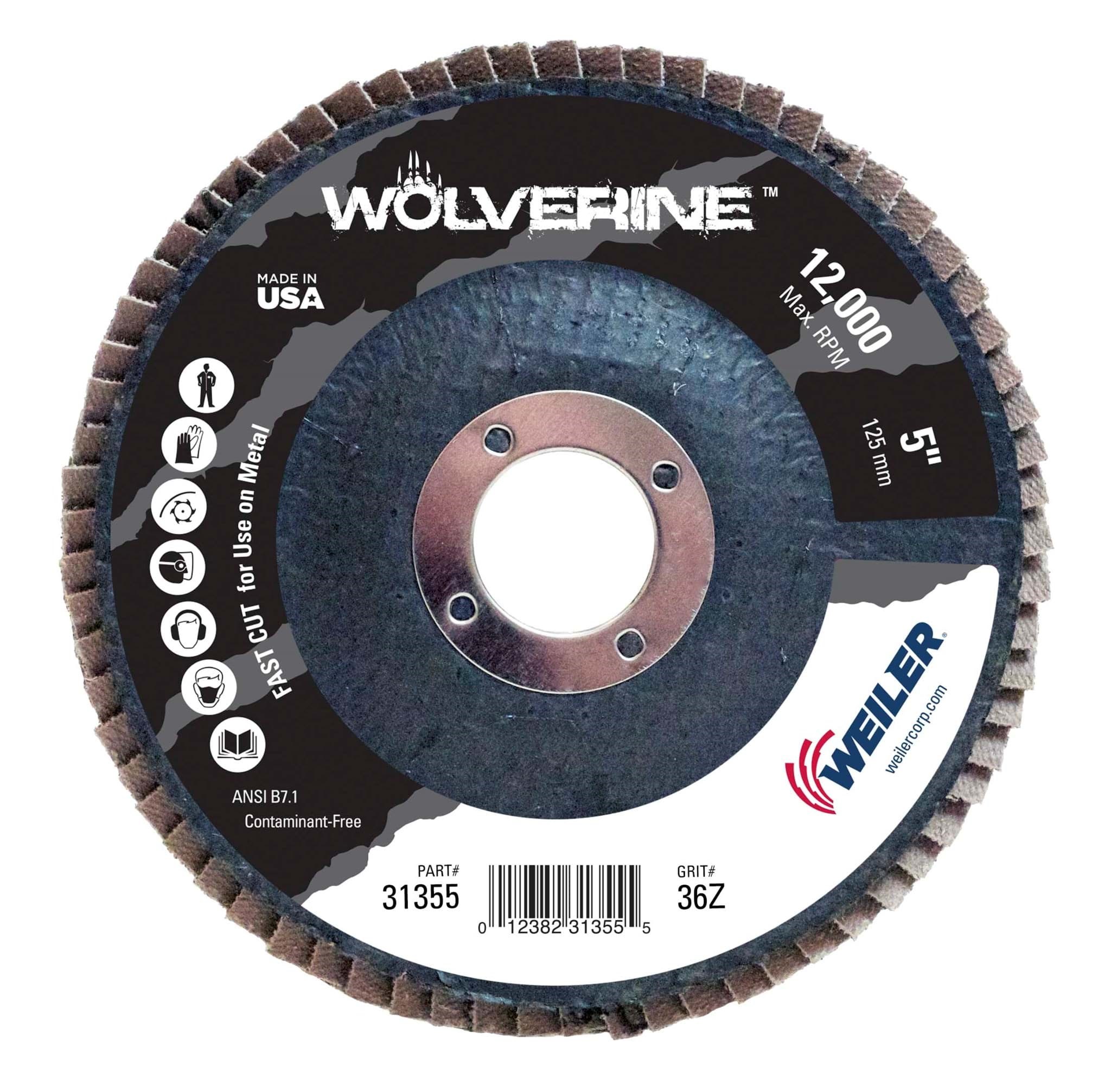 4-1/2" Wolverine Abrasive Flap Disc, Flat (TY27), Phenolic Backing, 40Z, 5/8"-11 UNC Nut