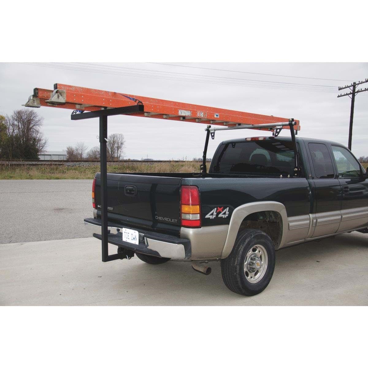 Ideal for oversized equipment including ladders, full sheets of drywall, or small boats. Can also be used to extend a work station or make a table. Features welded loops so that loads can be tied down. Can be used in an upright position or straight out for different load applications. Black powder coat is rust resistant. 2 In. (inch) receiver required. Perfect for short-bed trucks, SUVs (sport utility vehicle), vans and all other hauling vehicles. Easily removed and stored.