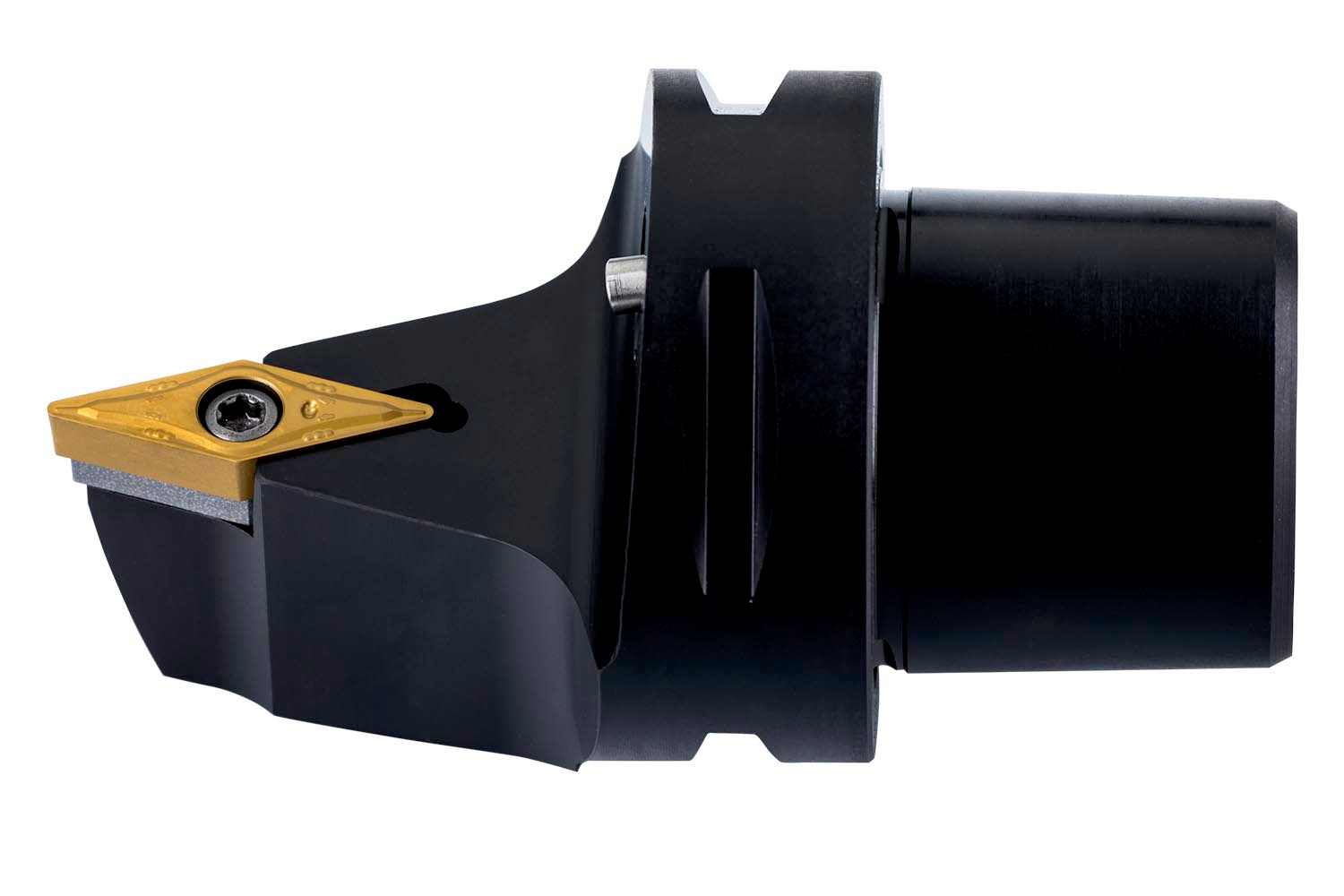 Screw clamp turning tool for holding a 35° rhombus positive insert with an inscribed circle diameter of 9.525mm, 4.76mm thick (ISO designation VB.. 1604.. or VC.. 1604.. ), neutral hand 72°30' side cutting with straight shank according to ISO 26623 (Polygon Shank Coupling) size C5, with 60mm protruding length for taper turning, single and multi-directional copy turning and longitudinal turning without shoulder