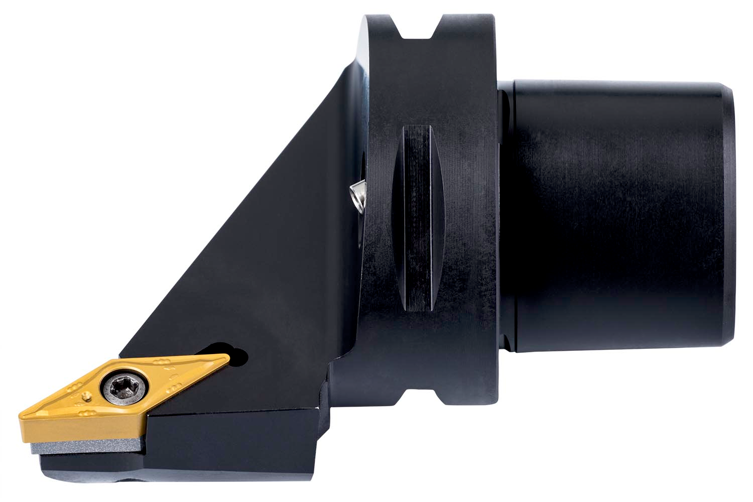 Screw clamp turning tool for holding a 35° rhombus positive insert with an inscribed circle diameter of 9.525mm, 4.76mm thick (ISO designation VB.. 1604.. or VC.. 1604.. ), right hand 93° side cutting with off-set shank according to ISO 26623 (Polygon Shank Coupling) size C6, with 45mm funtional width and 65mm protruding length for taper turning, single and multi-directional copy turning and longitudinal turning with and without shoulder