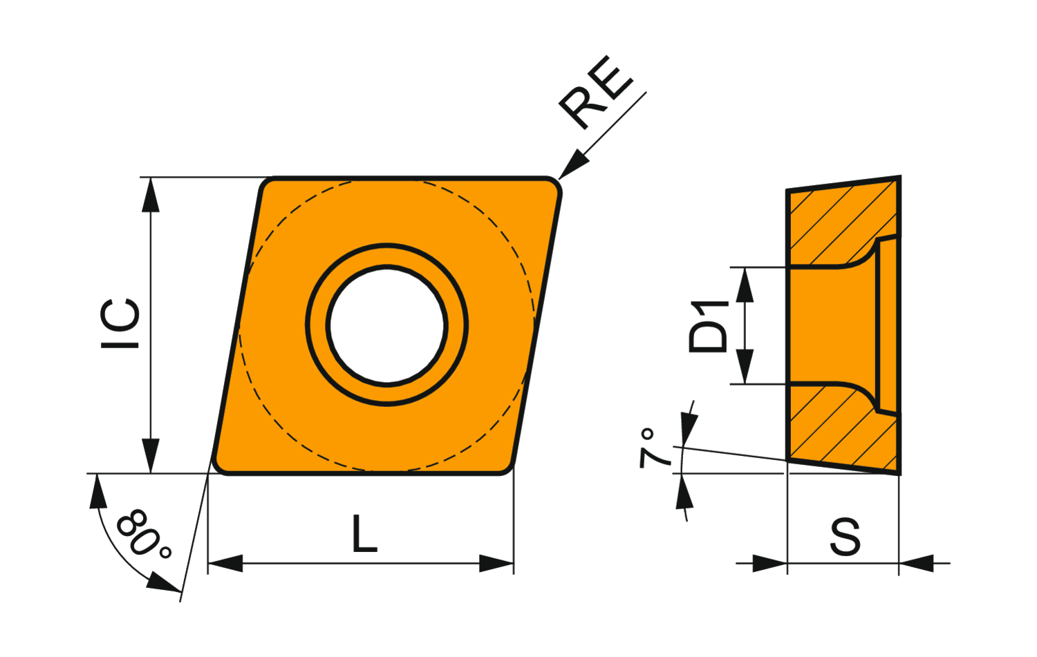 Single-sided positive turning insert, 80° rhomboid with 7° clearance, inscribed circle diameter of 0.375 inch, 0.156 inch thick, 0.031 inch nose radius and indexing accuracy according to ISO-tolerance class-M, in grade T8415.