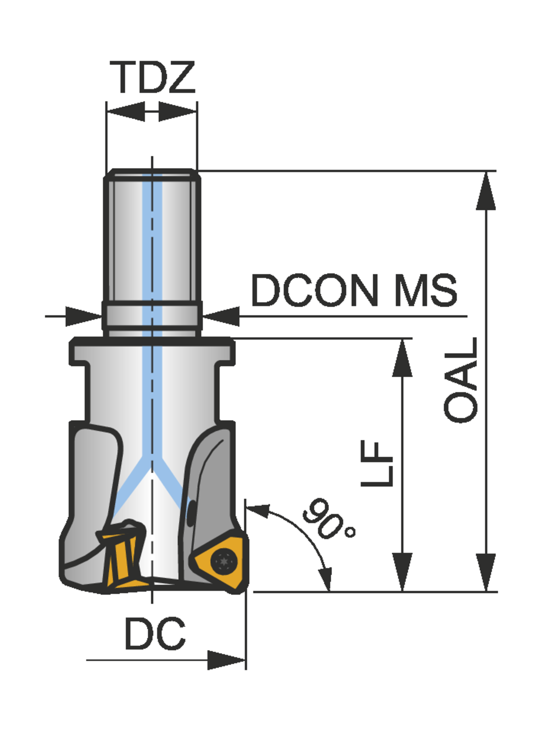 Shoulder face mill with double negative geometry which utilises 3 of TNGX 1606.. double-sided inserts, cutting diameter 1.500" with 90° approach angle and M16 threaded shank for standard modular tool-holders, , through coolant for face milling, shallow shoulder milling, shallow slot milling and helical milling in pre-machined holes