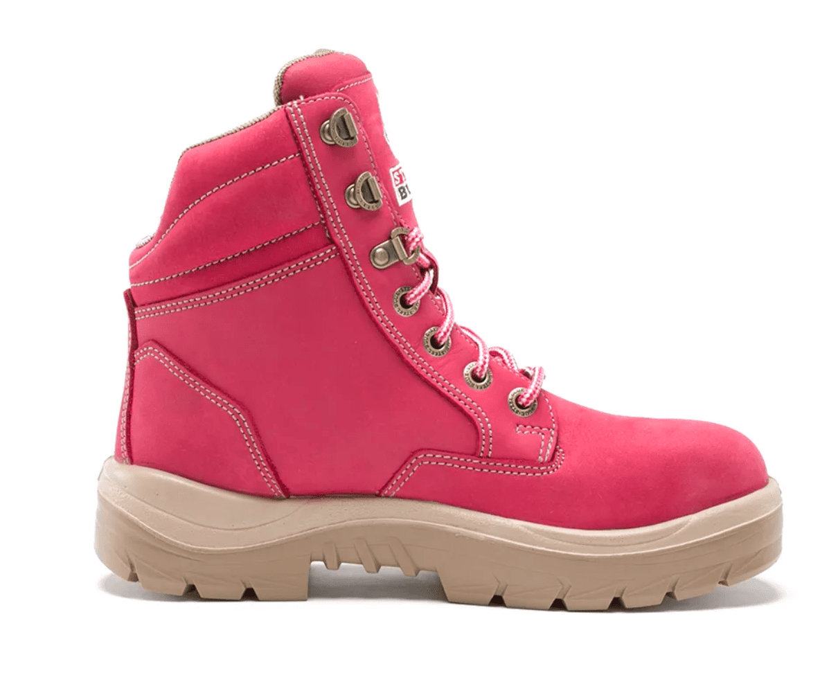 - The Southern Cross Ladies is crafted from premium Pink Nubuck Leather that is Water Resistant. Steel Blue Ladies safety boots are designed just for women and include a shorter ankle length and smaller instep. The Southern Cross Ladies boot also features a durable Nitrile Outsole that is heat resistant to 572°F and Static Dissipative properties.