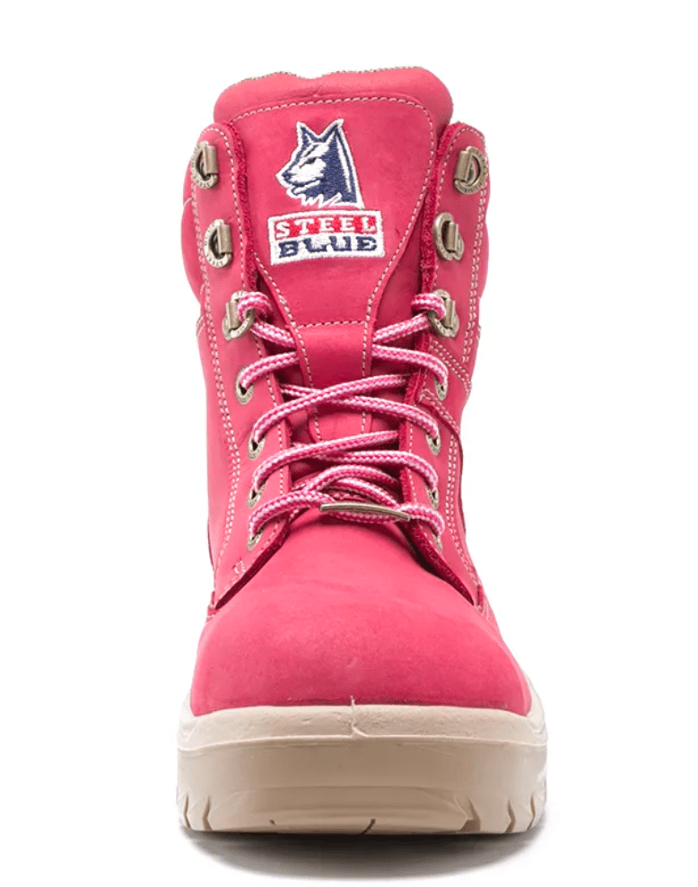 - The Southern Cross Ladies is crafted from premium Pink Nubuck Leather that is Water Resistant. Steel Blue Ladies safety boots are designed just for women and include a shorter ankle length and smaller instep. The Southern Cross Ladies boot also features a durable Nitrile Outsole that is heat resistant to 572°F and Static Dissipative properties.