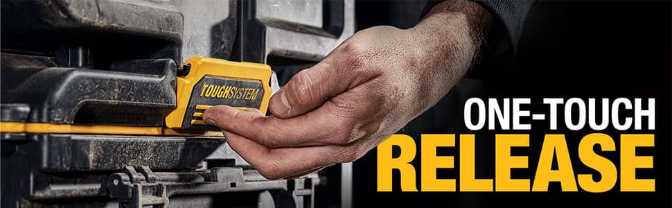 The ToughSystem 2.0 Rolling Tower combines all your favorite ToughSystem 2.0 Storage products in one tower so you can roll onto the job-site and get the job done. This rolling tower includes the ToughSystem 2.0 Toolbox, Extra Large Toolbox, and Rolling Toolbox with patented auto-connect side latches. Each toolbox features upgraded 2-piece metal front latches for added durability. These ToughSystem 2.0 toolboxes are dust and water resistance with an IP65 rating. Each toolbox optimizes organization. The ToughSystem 2.0 Toolbox includes 2 large organizer cups with removable dividers and the Extra Large Toolbox and Rolling Toolbox include a removable inner tray. The ToughSystem 2.0 Rolling tower is backwards compatible with any ToughSystem product.